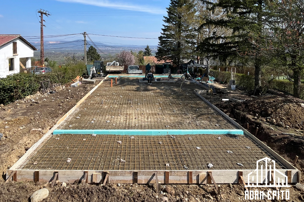 Tahitótfalu hegyoldalában tovább zajlanak a munkálatok. A 160 m2-es tégla szerkezetű családi ház generálkivitelezésének első szakaszával - a tükör kiszedésével, a sávalap kiásásával, a 150 m3 kitermelt talaj elszállításával, a sávalap és a lábazati fal vasszerelésével valamint betonozásával, illetve a lábazati falak feltöltésével - már végeztünk, most pedig elkészült a vasalt aljzatbeton zsaluzása és vasszerelése is a víz- és szennyvíz beállásokkal. A következő lépéssel hamarosan jelentkezünk!